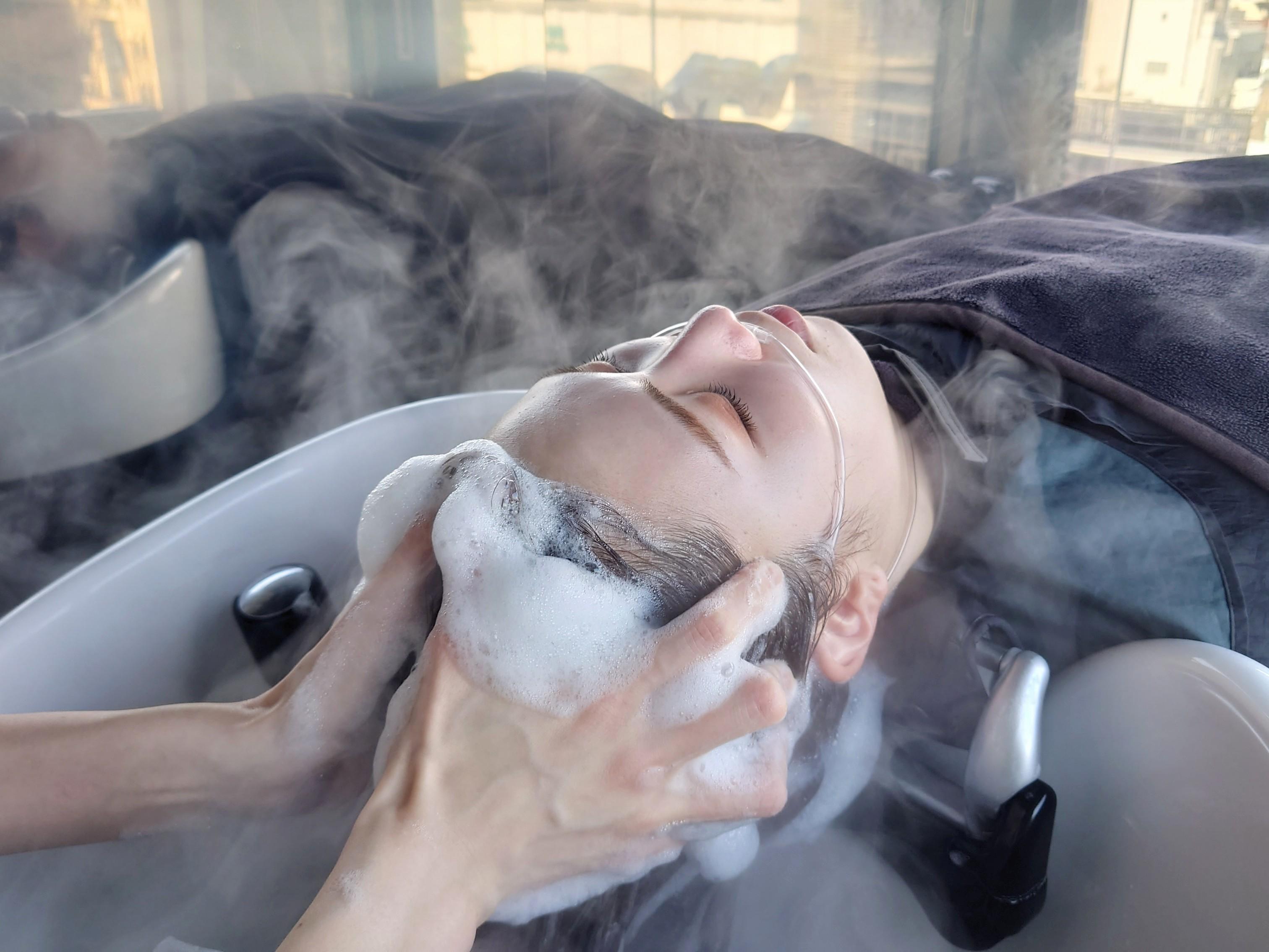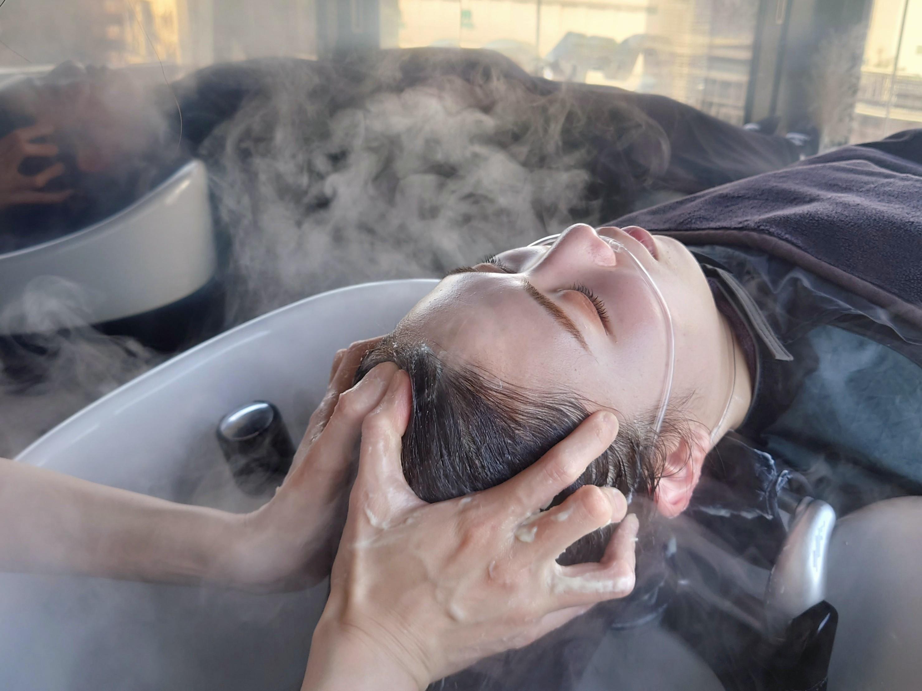 氷点下泡の炭酸シャンプーでひんやり、そしてより頭皮をすっきり!! 特にクリームバスとの併用がおススメ!!
